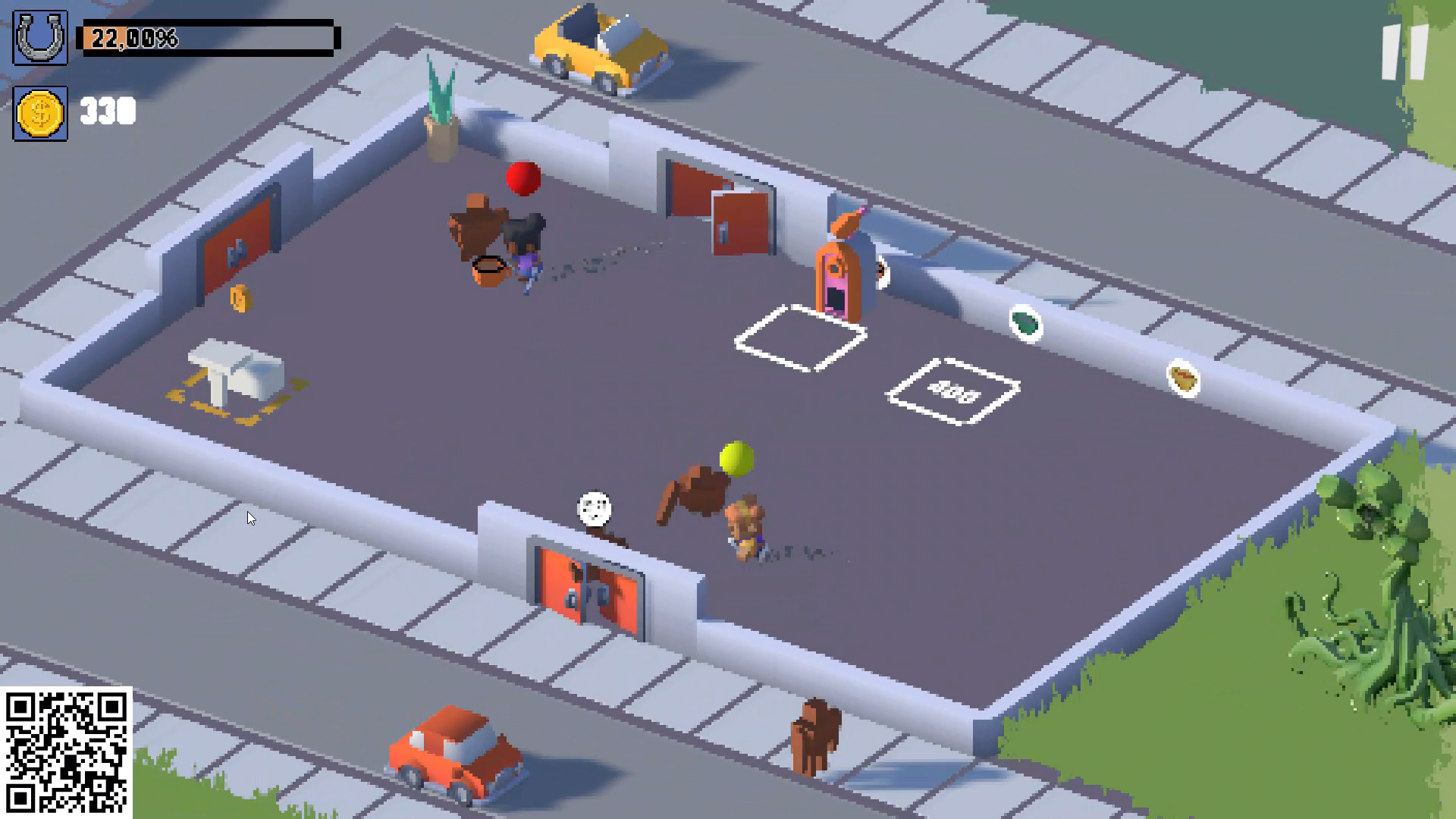Действие игры происходит в заброшенном кафе, где игрокам нужно насильно затаскивать клиентов в кафе и их обслуживать. Чем больше людей в партии, тем быстрее она проходится.